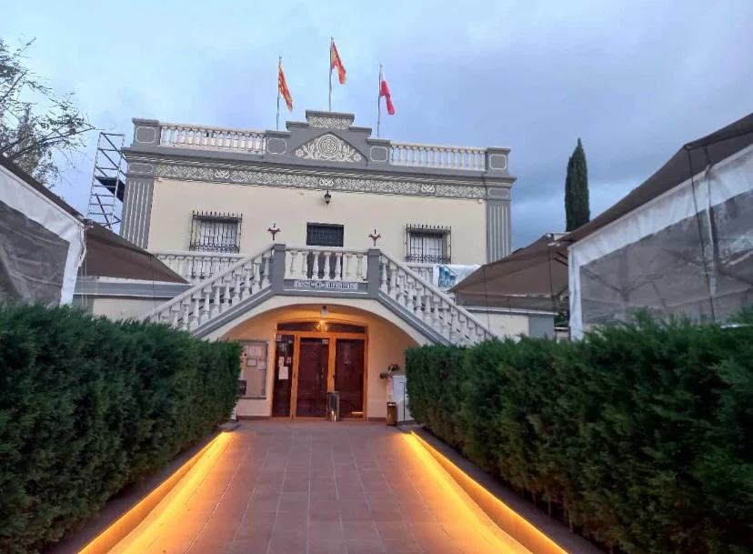 Sí, dispone de salones, biblioteca, bolera, zonas ajardinadas y pista polivalente. Estos espacios pueden destinarse a actividades culturales, talleres, reuniones o celebraciones, siempre en el marco de la vida asociativa y cultural.